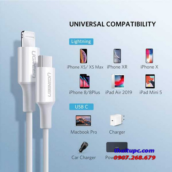 Cáp Type C to Lightning - UGREEN 60747 Sỡ hữu Chip sạc nguyên bản của Apple nên sẽ có độ tương thích tuyệt đối với các thiết bị của hãng. Có chế độ tự ngắt khi sạc đầy, bảo vệ thiết bị của bạn một cách an toàn nhất có thể.