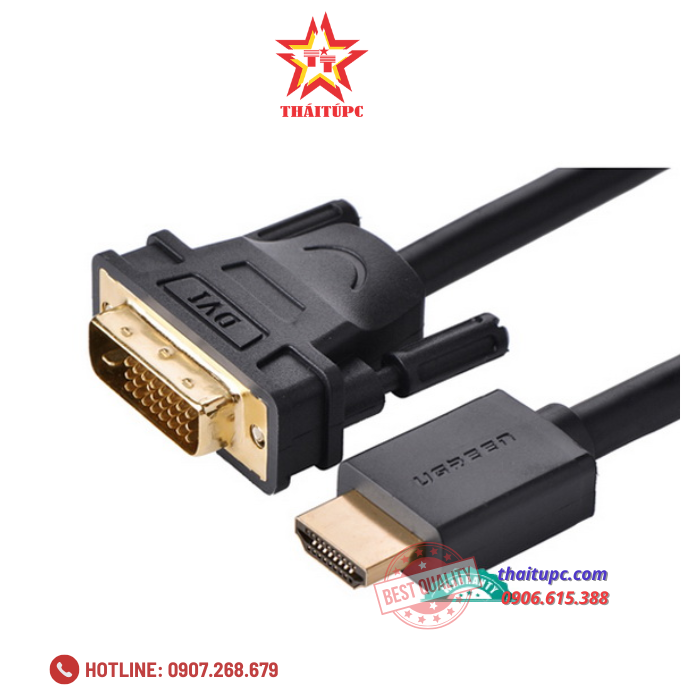 - Cáp HDMI to DVI cao cấp Ugreen HD106 cho phép bạn kết nối các thiết bị HDMI (High Definition Multimedia Interface) với các thiết bị DVI (Digital Visual Interface) với chất lượng hình ảnh sắc nét Resolution lên đến Full-HD 1080p, 3D.