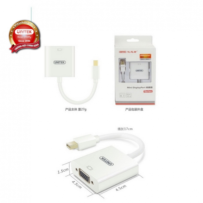 Mô tả sản phẩm : Cáp mini displayport to VGA Unitek Y-6336WH