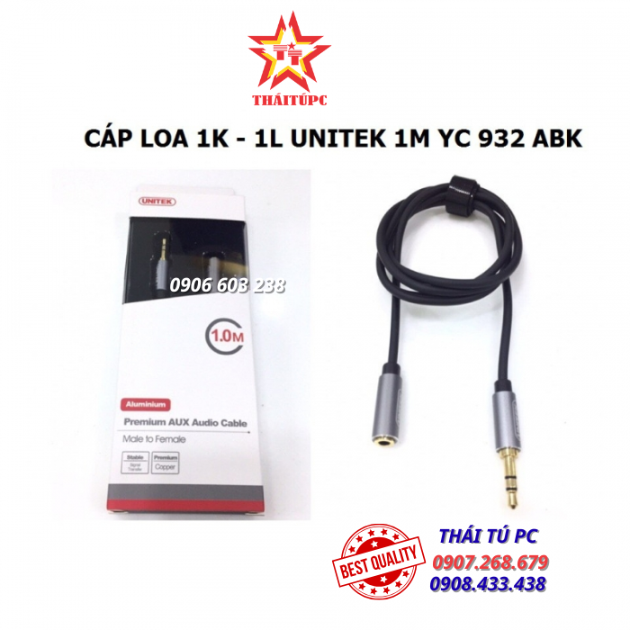 CÁP LOA 1K - 1L Unitek 1M YC 932 ABK Chuyển đổi từ rắc 3.5mm KIM ra cổng rắc 3.5mm LỖ Nối dài sợi cáp loa hay kết nối âm thanh của PC, Laptop và các thiết bị khác ra loa hay tai nghe. Sản phẩm chống nhiễu cực tốt cho chất lượng âm thanh hay và chuẩn