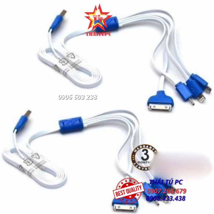 Cáp sạc đa năng, 1 đầu usb ra 4 đầu: hỗ trợ sạc cho chuẩn Micro usb, mini usb, lightning usb, iphone 4 usb, galaxy tab p1000 usb