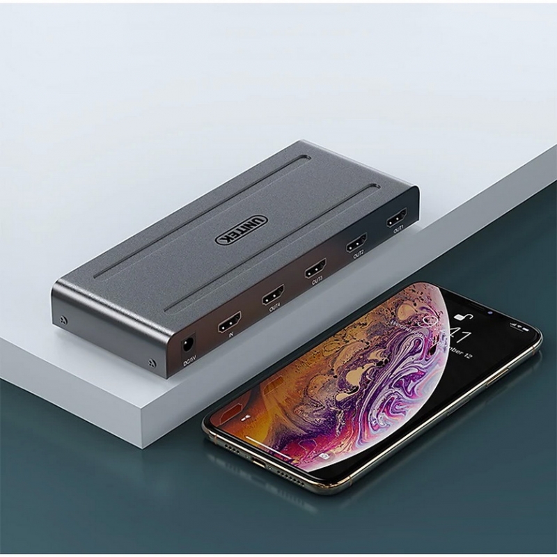 Bộ chia Multi HDMI 1 ra 4 Unitek V131A là thiết bị cho phép bạn kết nối một nguồn HDMI duy nhất đến bốn màn hình hiển thị khác nhau mà không làm giảm chất lượng tín hiệu. Sản phẩm này đặc biệt hữu ích trong các môi trường như văn phòng, phòng họp, trung tâm thương mại, lớp học, hoặc thậm chí là tại gia đình khi bạn muốn trải nghiệm nội dung trên nhiều màn hình cùng một lúc.