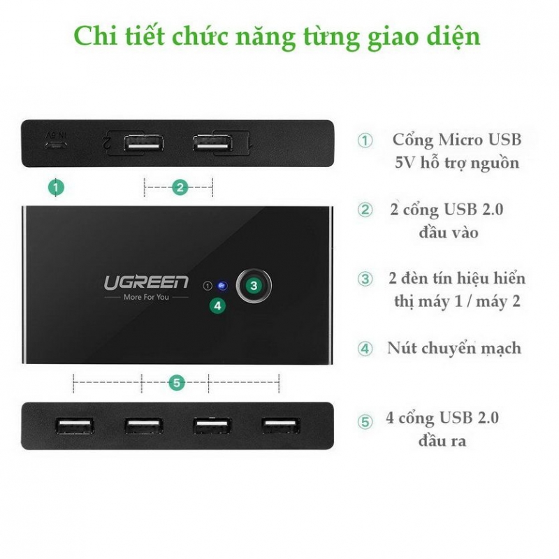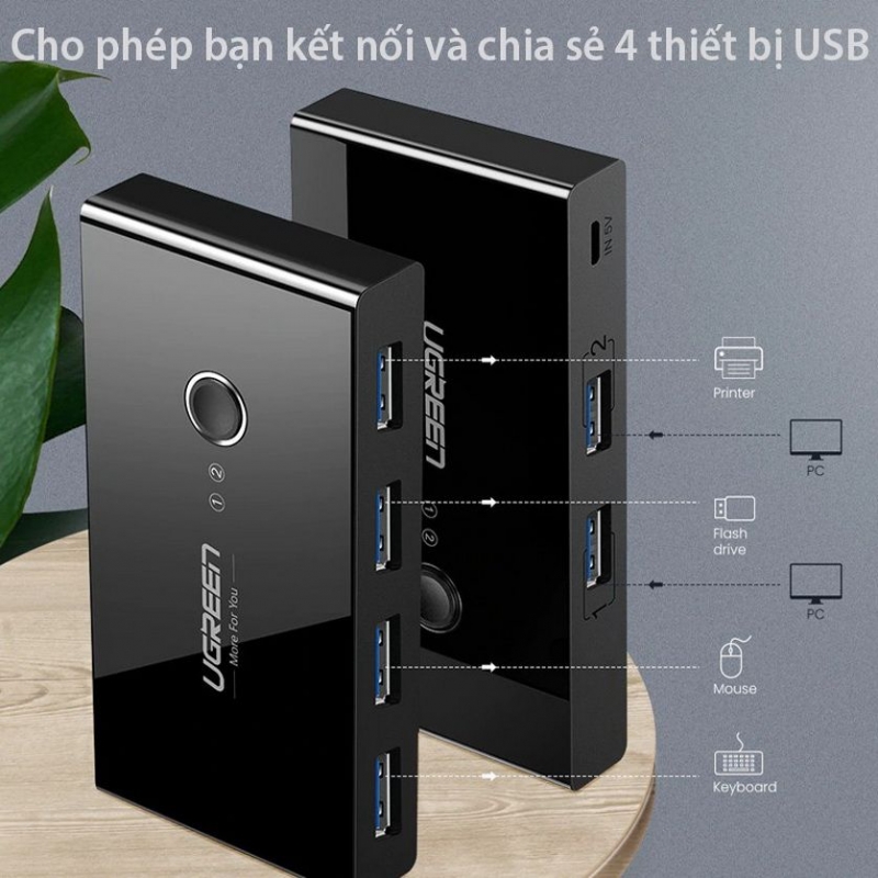 UGREEN 30767 BỘ CHUYỂN MẠCH USB 2.0 GỘP 4 THIẾT BỊ VÀO 2 MÁY TÍNH CAO CẤP US216 20030767